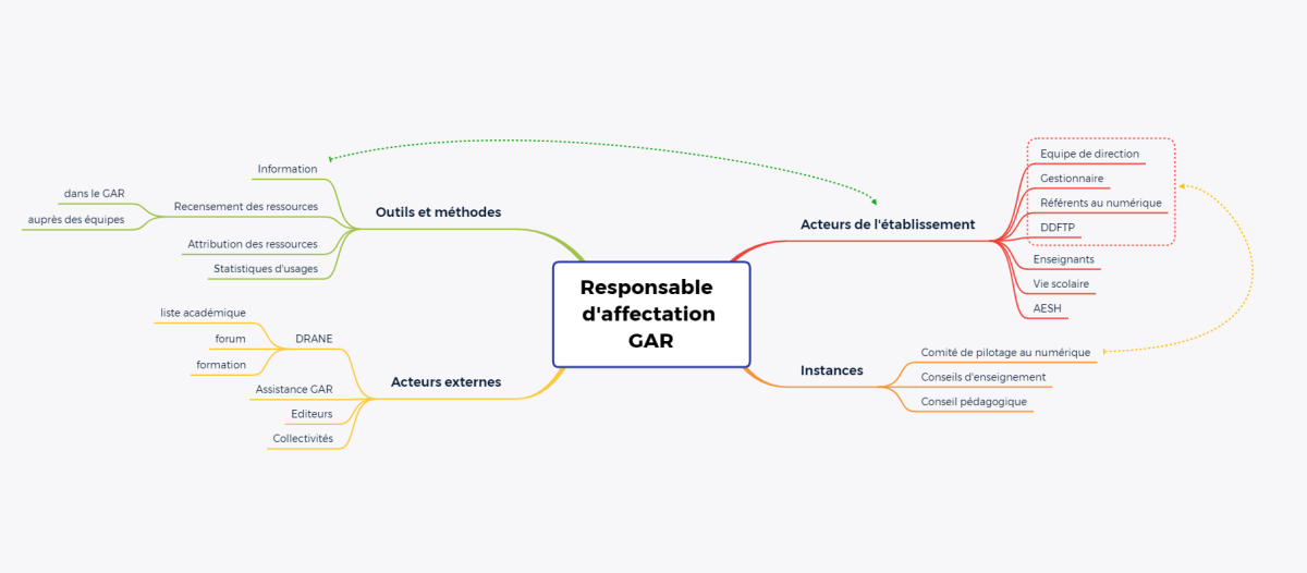 aucune mention n'en est faîte : nouveau rôle pour les établissements bénéficiant du GAR dans leur ENT, non prévu dans les différents textes tous antérieurs à la mise en place du GAR.