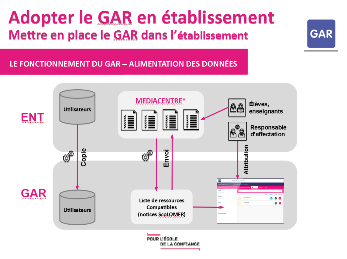 Le GAR va s'appuyer sur l'annuaire de l'ENT pour affecter les ressources. La mise à jour de l'annuaire est effectuée quotidiennement.