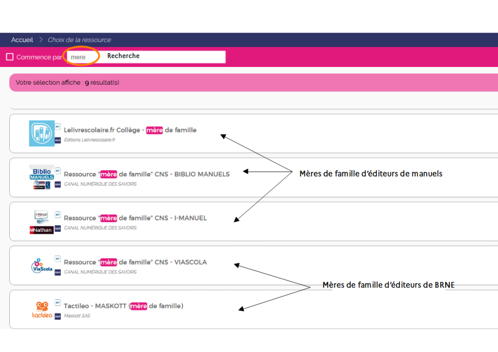 1- Rechercher les ressources "mères de famille" grâce au filtre de recherche