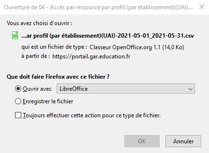 Récupérer le fichier csv « 04- Accès aux ressources par profil » sur la période choisie.