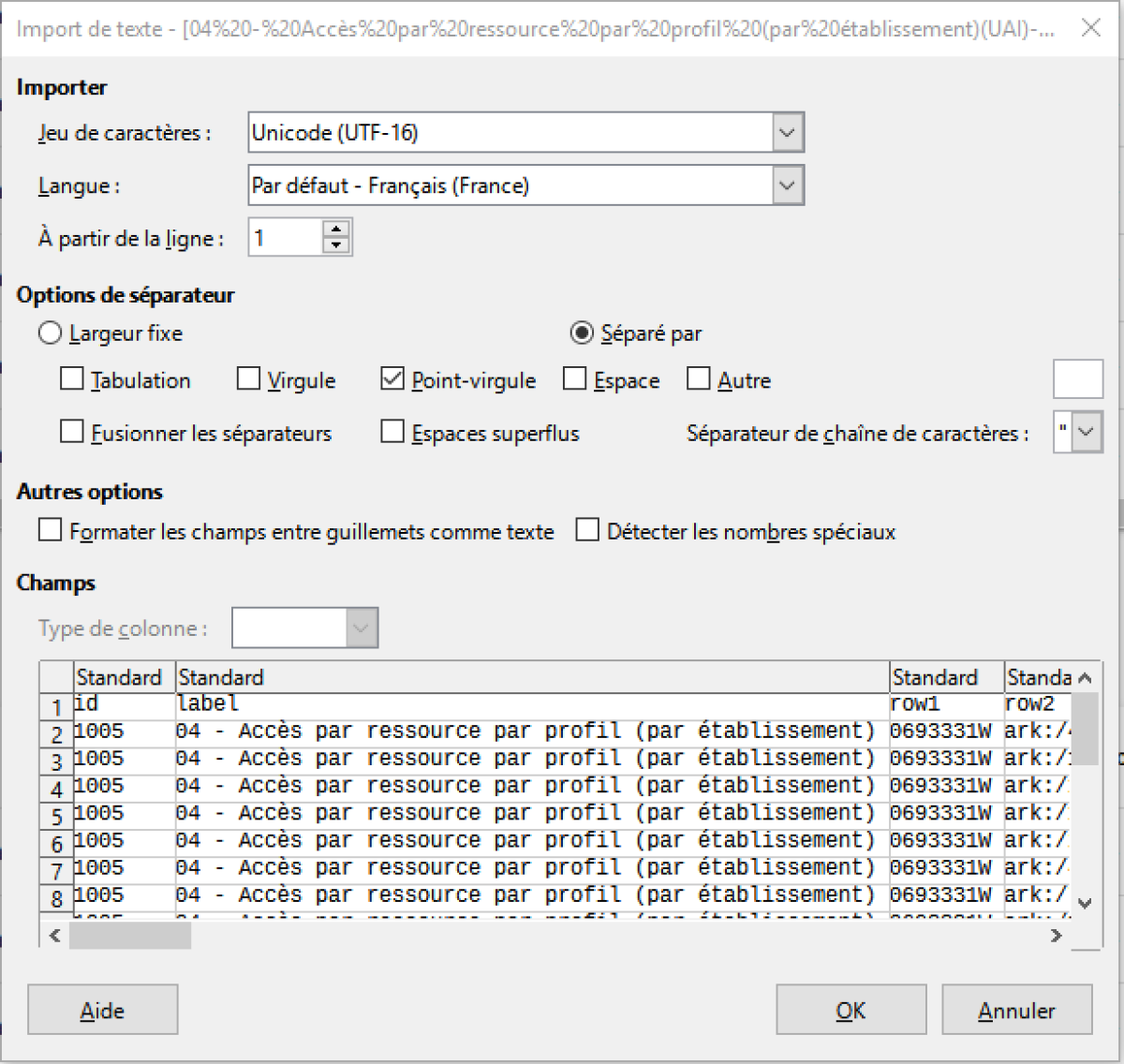 -Options de séparateur = Point-Virgule