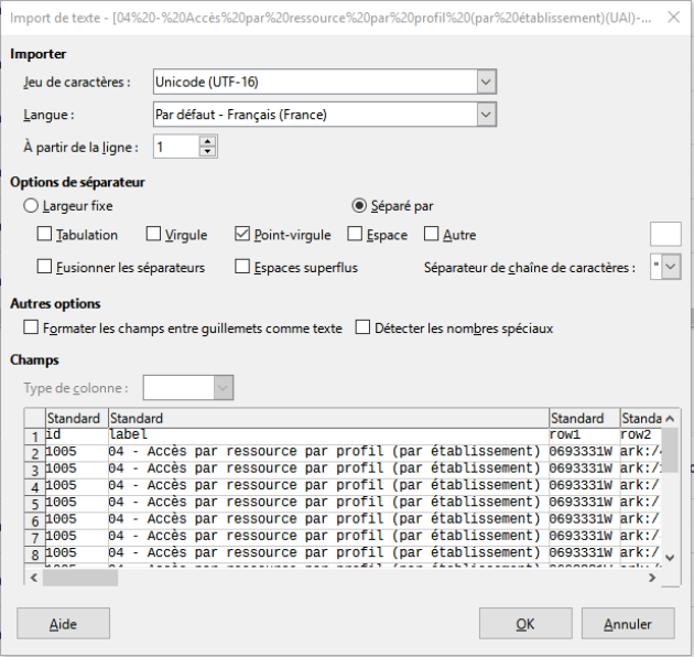 Par exemple, utilisez l'export créé dans la partie précédente : « service « Accès aux ressources », 'indicateur « 04-Accès aux ressources par profil ». »