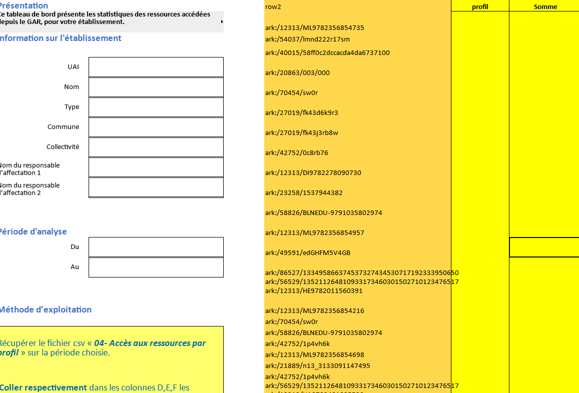 Méthode : Insérer les données exportées du GAR dans le tableur proposé