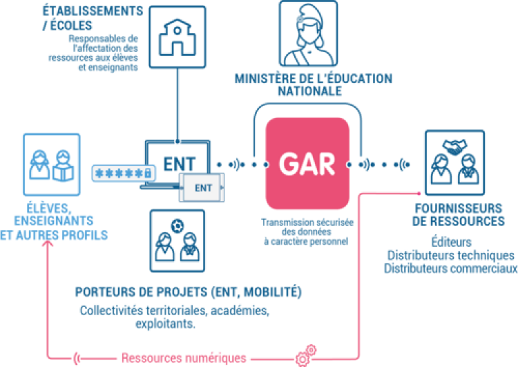 Développé à la demande du Ministère, le GAR est l'interface partagé entre les ENT et les fournisseurs de ressources.