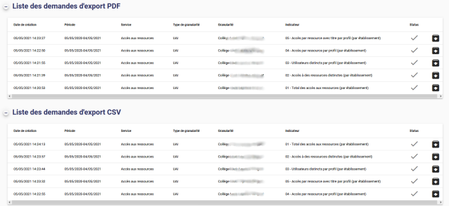 La génération des extractions est asynchrone : chaque rapport est téléchargeable pendant 30 jours.