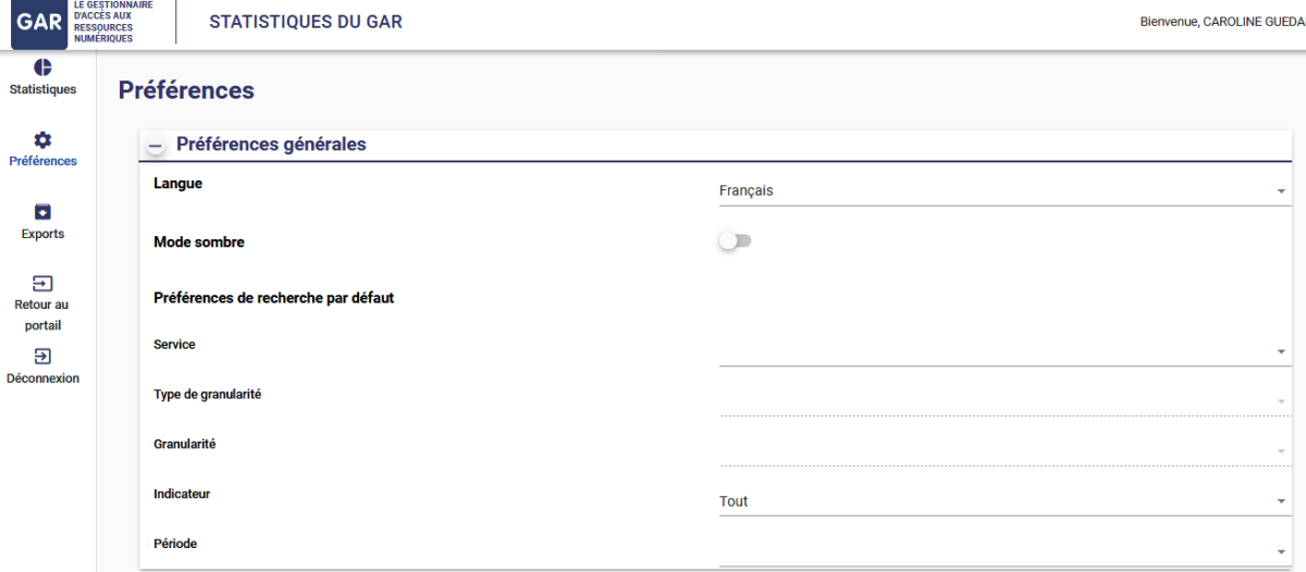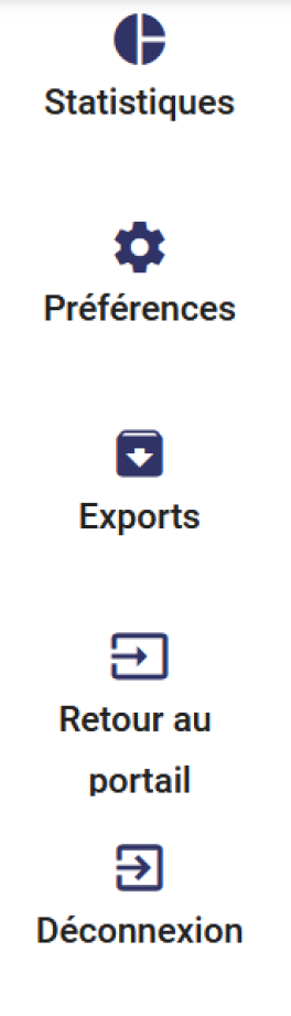 Le bouton « Exports » permet un accès direct à ses demandes d'exports de statistiques, réalisées via la page « Statistiques ».